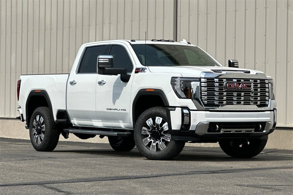 $8,186 off MSRP! 2025 GMC Sierra 2500HD Summit White Denali 4WD 10-Speed Automatic Duramax 6.6L V8 Turbodiesel 4D Crew Cab 10-Speed Automatic, 4WD, Atmosphere/Brownstone Leather, 12-Way Power Driver Seat Adjuster w/Lumbar, 12-Way Power Passenger Seat Adjuster w/Lumbar, 120-Volt Bed Mounted Power Outlet, 120-Volt Instrument Panel Power Outlet, 2 Charge-Only Rear USB Ports, 2 Charge/Data USB Ports Inside Center Console, 2 USB Ports, 2-Speed Active Transfer Case, 220-Amp Alternator, 4-Wheel Disc Brakes, 7 Speakers, ABS brakes, Air Conditioning, Alloy wheels, AM/FM radio: SiriusXM with 360L, Apple CarPlay/Android Auto, Auto High-beam Headlights, Auto-dimming door mirrors, Auto-dimming Rear-View mirror, Automatic Emergency Braking, Automatic temperature control, Bed View Camera w/2 Trailer Camera Provisions, Bose Premium 7-Speaker Sound System, Brake assist, Buckle to Drive, Bumpers: body-color, Compass, Deep-Tinted Glass, Delay-off headlights, Denali Reserve Package, Driver door bin, Driver Memory, Driver vanity mirror, Dual front impact airbags, Dual front side impact airbags, Electric Rear-Window Defogger, Electronic Stability Control, Emergency communication system: OnStar, Engine Block Heater, Exhaust Brake, Floor-Mounted Center Console, Following Distance Indicator, Forge Perforated Leather-Appointed Front Seat Trim, Forward Collision Alert, Front anti-roll bar, Front Bucket Seats, Front Center Armrest, Front dual zone A/C, Front fog lights, Front License Plate Kit, Front Pedestrian Braking, Front Rain-Sensing Wipers, Front reading lights, Front wheel independent suspension, Fully automatic headlights, Garage door transmitter, Genuine wood dashboard insert, Genuine wood door panel insert, HD Surround Vision, Heated 2nd Row Outboard Seats, Heated door mirrors, Heated Driver & Front Outboard Passenger Seats, Heated front seats, Heated rear seats, Heated steering wheel, Heavy-Duty 80 Amp Battery, Hill Descent Control, Hitch Guidance w/Hitch View, Illuminated entry, In-Vehicle Trailering System App, Inside Rearview Auto-Dimming Rear Camera Mirror, IntelliBeam Automatic High Beam On/Off, Keyless Open & Start, Lane Departure Warning System, LED Cargo Area Lighting, LED Smoked Amber Roof Marker Lamps, Low tire pressure warning, Manual Tilt-Wheel/Telescoping Steering Column, Memory seat, Multicolor 15 Diagonal Head-Up Display, Occupant sensing airbag, Off-Road Suspension, OnStar Services Capable, Outside temperature display, Overhead airbag, Overhead console, Panic alarm, Passenger door bin, Passenger vanity mirror, Pickup Box, Polished Exhaust Tip, Power door mirrors, Power driver seat, Power Front Passenger Windows w/Express Up/Down, Power passenger seat, Power Sliding Rear Window w/Defogger, Power steering, Power Sunroof, Power windows, Preferred Equipment Group 5SA, Push Button Start, Radio: AM/FM w/Premium GMC Infotainment System, Rain sensing wipers, Rear Cross Traffic Alert, Rear reading lights, Rear seat center armrest, Rear step bumper, Rear Wheelhouse Liners, Rear window defroster, Remote keyless entry, Remote Vehicle Starter System, Safety Alert Seat, Security system, Signature Chrome Denali Grille, SiriusXM w/360L Trial Subscription, Snow Plow Prep/Camper Package, Speed control, Speed-sensing steering, Split folding rear seat, Spray-On Pickup Bedliner w/GMC Logo, Steering Wheel Audio Controls, Steering wheel mounted audio controls, Tachometer, Technology Package, Telescoping steering wheel, Tilt steering wheel, Traction control, Trailer Cam Provisions & Trailer Viewing Software, Trailer Side Blind Zone Alert, Trip computer, Turn signal indicator mirrors, Ultrasonic Front & Rear Park Assist, Unauthorized Entry Theft-Deterrent System, Universal Home Remote, Universal Vehicle Module, Variably intermittent wipers, Ventilated Driver & Front Passenger Seats, Ventilated front seats, Voltmeter, Wheels: 20 Ultra B Price includes: $1000 - Buick & GMC Consumer Cash Program. Exp. 11/03/2025 $1000 - GM Bonus Cash. Exp. 11/03/2025