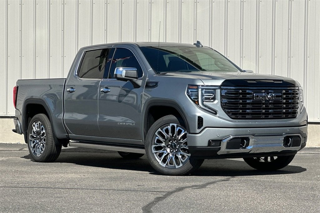 $11,428 off MSRP! 2026 GMC Sierra 1500 Sterling Metallic Denali Ultimate 4WD 10-Speed Automatic EcoTec3 6.2L V8 4D Crew Cab 10-Speed Automatic, 4WD, Alpine Umber Leather, 12 Speakers, 120-Volt Bed Mounted Power Outlet, 120-Volt Interior Power Outlet, 16-Way Power Driver Seat Adjuster w/Lumbar, 16-Way Power Passenger Seat Adjuster w/Lumbar, 170 Amp Alternator, 2 Charge/Data USB Ports Inside Center Console, 2 Type-C Charge-Only Rear USB Ports, 2 USB Ports, 3.23 Rear Axle Ratio, 4-Wheel Disc Brakes, ABS brakes, Adaptive suspension, Air Conditioning, Alloy wheels, AM/FM radio: SiriusXM with 360L, Apple CarPlay/Android Auto, Auto High-beam Headlights, Auto-dimming door mirrors, Auto-dimming Rear-View mirror, Auto-Locking Rear Differential, Automatic temperature control, Bed View Camera, Bose Premium Series w/12-Speaker System, Brake assist, Buckle to Drive, Bumpers: body-color, Carbon Fiber Composite Bed, Chrome Recovery Hooks, Color-Keyed Carpeting Floor Covering, Compass, Deep-Tinted Glass, Delay-off headlights, Denali Premium Suspension w/Adaptive Ride Control, Driver door bin, Driver Memory, Driver vanity mirror, Dual Active Exhaust, Dual front impact airbags, Dual front side impact airbags, Electric Rear-Window Defogger, Electronic Stability Control, Emergency communication system: OnStar, Enhanced Automatic Emergency Braking, Floor-Mounted Center Console, Following Distance Indicator, Forward Collision Alert, Front anti-roll bar, Front Bucket Seats, Front Center Armrest, Front dual zone A/C, Front fog lights, Front License Plate Kit, Front Pedestrian Braking, Front Rain-Sensing Wipers, Front reading lights, Front wheel independent suspension, Full Grain Leather Seat Trim, Fully automatic headlights, Garage door transmitter, Genuine wood console insert, Genuine wood dashboard insert, Genuine wood door panel insert, HD Surround Vision, Heads-Up Display, Heated 2nd Row Outboard Seats, Heated door mirrors, Heated Driver & Front Outboard Passenger Seating, Heated front seats, Heated rear seats, Heated steering wheel, Heavy-Duty Air Filter, High Gloss Black Header w/Signature Denali Grille, Hill Descent Control, Hitch Guidance, Hitch View, Illuminated entry, In-Vehicle Trailering System App, Integrated Trailer Brake Controller, IntelliBeam Automatic High Beam On/Off, Keyless Open & Start, LED Cargo Area Lighting, Low tire pressure warning, Memory seat, Multicolor 15 Diagonal Head-Up Display, MultiPro Tailgate Audio System by Kicker (LPO), Navigation System, Occupant sensing airbag, OnStar Services Capable, Outside temperature display, Overhead airbag, Overhead console, Panic alarm, Passenger door bin, Passenger vanity mirror, Perimeter Lighting, Power Door Locks, Power door mirrors, Power driver seat, Power Front Passenger Windows w/Express Up/Down, Power Front Windows w/Driver Express Up/Down, Power moonroof, Power passenger seat, Power Rake & Telescoping Steering Column, Power Rear Windows w/Express Down, Power Sliding Rear Window w/Rear Defogger, Power steering, Power Sunroof, Power windows, Preferred Equipment Group 5SB, Push Button Start, Radio data system, Radio: Premium GMC Infotainment Audio System, Rain sensing wipers, Rear Cross Traffic Braking, Rear Pedestrian Detection, Rear reading lights, Rear seat center armrest, Rear step bumper, Rear Wheelhouse Liners, Rear window defroster, Remote keyless entry, Remote Vehicle Starter System, Safety Alert Seat, Security system, SiriusXM w/360L Trial Subscription, Speed control, Speed-sensing steering, Split folding rear seat, Spray-On Pickup Bedliner w/GMC Logo, Steering Wheel Audio Controls, Steering wheel mounted audio controls, Super Cruise, Tachometer, Telescoping steering wheel, Theft Deterrent System (Unauthorized Entry), Tilt steering wheel, Traction control, Trailer Camera Provisions, Trailer Side Blind Zone Alert, Trailer Tire Pressure Monitor System, Trail Price includes: $1750 - Buick & GMC Consumer Cash Program. Exp. 11