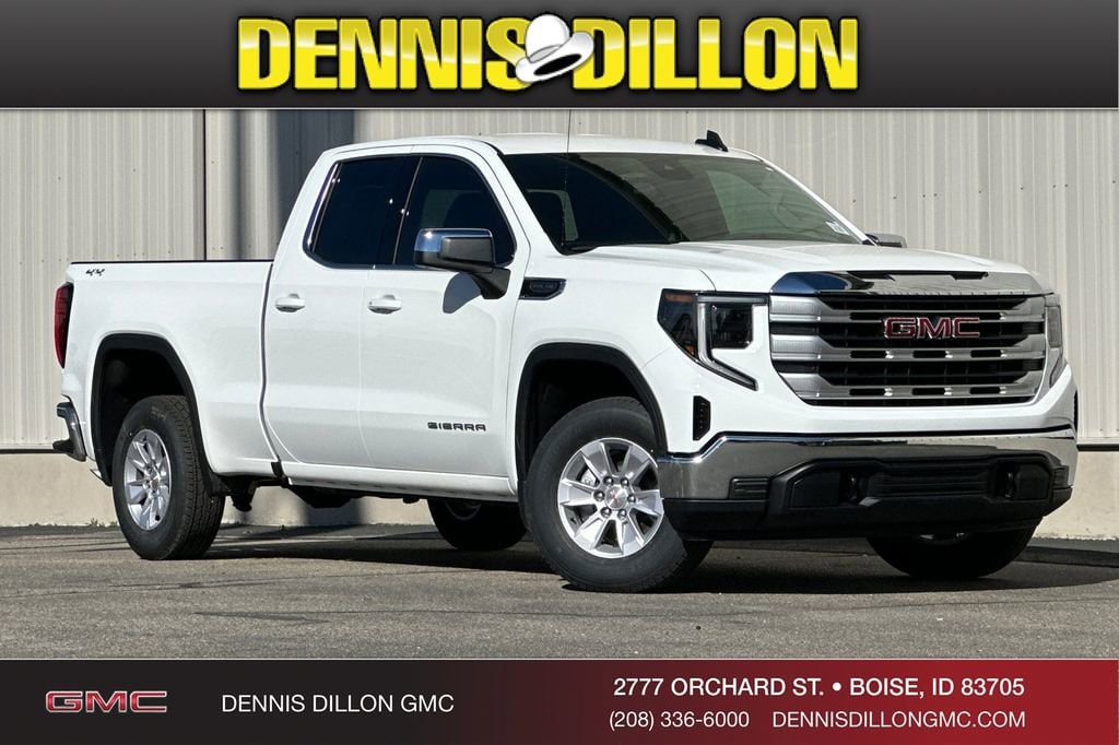 $9,762 off MSRP! 2026 GMC Sierra 1500 Summit White SLE 4WD 10-Speed Automatic EcoTec3 5.3L V8 Double Cab 10-Speed Automatic, 4WD, Black Cloth, 10-Way Power Driver Seat Adjuster with Lumbar, 120-Volt Bed Mounted Power Outlet, 120-Volt Interior Power Outlet, 170 Amp Alternator, 2 Charge/Data USB Ports, 2 Type-C Charge-Only Rear USB Ports, 220 Amp Alternator, 3.23 Rear Axle Ratio, 4-Way Manual Passenger Seat Adjuster, 4-Wheel Disc Brakes, 6 Speakers, 6-Speaker Audio System Feature, ABS brakes, Adaptive Cruise Control, Air Conditioning, Alloy wheels, AM/FM radio: SiriusXM with 360L, Apple CarPlay/Android Auto, Auto High-beam Headlights, Auto-Locking Rear Differential, Automatic Emergency Braking, Automatic temperature control, Auxiliary External Transmission Oil Cooler, Brake assist, Buckle to Drive, Bumpers: chrome, Chrome Header with Medium Silver Grille Insert Bars, Cloth Seat Trim, Color-Keyed Carpeting Floor Covering, Compass, Deep-Tinted Glass, Delay-off headlights, Driver door bin, Driver vanity mirror, Dual front impact airbags, Dual front side impact airbags, Dual-Zone Automatic Climate Control, Electric Rear-Window Defogger, Electronic Stability Control, Emergency communication system: OnStar, External Engine Oil Cooling, Following Distance Indicator, Forward Collision Alert, Front 40/20/40 Split-Bench Seat, Front anti-roll bar, Front Center Armrest w/Storage, Front dual zone A/C, Front Frame-Mounted Black Recovery Hooks, Front License Plate Kit, Front Pedestrian Braking, Front reading lights, Front Rubberized-Vinyl Floor Mats, Front wheel independent suspension, Fully automatic headlights, HD Rear Vision Camera, Heated door mirrors, Heated Driver and Front Outboard Passenger Seating, Heated front seats, Heated steering wheel, Hitch Guidance, Hitch View, Illuminated entry, in-Vehicle Trailering System App, Integrated Trailer Brake Controller, IntelliBeam Automatic High Beam on/Off, Keyless Open and Start, Lane Keep Assist with Lane Departure Warning, LED Cargo Area Lighting, Low tire pressure warning, Manual Tilt-Wheel and Telescoping Steering Column, Navigation System, Occupant sensing airbag, OnStar Services Capable, Outside temperature display, Overhead airbag, Overhead console, Panic alarm, Passenger door bin, Passenger vanity mirror, Power Door Locks, Power door mirrors, Power driver seat, Power Front Windows with Driver Express Up/Down, Power Front Windows with Passenger Express Down, Power Rear Windows with Express Down, Power Sliding Rear Window with Rear Defogger, Power steering, Power windows, Preferred Equipment Group 3SA, Preferred Package, Push Button Start, Radio data system, Radio: Premium GMC Infotainment Audio System, Rear reading lights, Rear Rubberized-Vinyl Floor Mats, Rear step bumper, Rear Wheelhouse Liners, Rear window defroster, Remote keyless entry, Remote Start Package, Remote Vehicle Starter System, Security system, SiriusXM with 360L Trial Subscription, SLE Convenience Package, SLE Value Package, Speed control, Speed-sensing steering, Split folding rear seat, Spray-on Pickup Bedliner with GMC Logo, Standard Suspension Package, Steering Wheel Audio Controls, Steering wheel mounted audio controls, Tachometer, Telescoping steering wheel, Theft Deterrent System (unauthorized Entry), Tilt steering wheel, Traction control, Trailering Package, Trip computer, Universal Home Remote, Variably intermittent wipers, Voltmeter, Wheels: 17 x 8 Bright Silver Painted Aluminum, Wi-Fi Hotspot Capable, Wireless Apple CarPlay/Wireless Android Auto, 10-Speed Automatic, 4WD, Black Cloth. Welcome to Dennis Dillon GMC, your trusted destination for a no-hassle, no-haggle car buying experience. At our dealership, we pride ourselves on offering the best upfront prices no surprises, just exceptional value. From the moment you walk through our doors, youâll receive our lowest, most competitive p Price includes: $1500 - Buick GMC Bonus Cash. Exp. 03/31/2026 $1750 - Buick & G