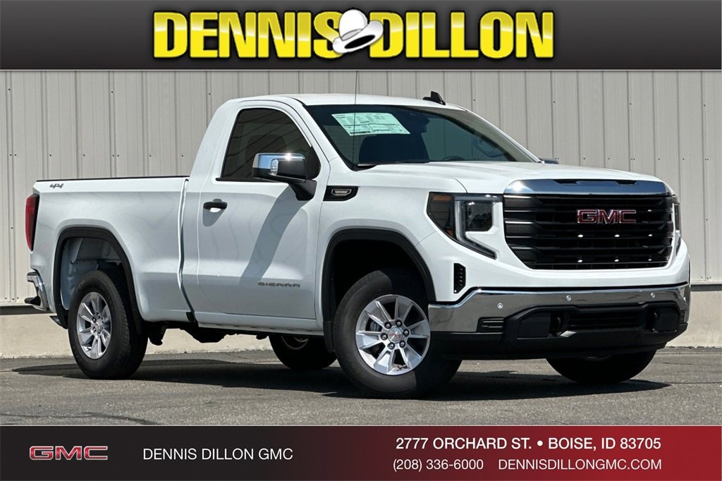 New Price! $8,187 off MSRP! 2026 GMC Sierra 1500 Summit White Pro 4WD 8-Speed Automatic 2.7L I4 Turbocharged DOHC 16V LEV3-SULEV30 310hp 2D Standard Cab 8-Speed Automatic, 4WD, Black Cloth, 120-Volt Bed Mounted Power Outlet, 120-Volt Interior Power Outlet, 1SA Safety Plus Package, 2 Charge/Data USB Ports, 2 Speakers, 2-Speaker Audio System Feature, 220 Amp Alternator, 3.42 Rear Axle Ratio, 4-Way Manual Driver Seat Adjuster, 4-Way Manual Passenger Seat Adjuster, 4-Wheel Disc Brakes, ABS brakes, Air Conditioning, AM/FM radio, Apple CarPlay/Android Auto, Auto High-beam Headlights, Automatic Emergency Braking, Brake assist, Buckle to Drive, Bumpers: chrome, Chrome Header w/Flat Black Grille Insert Bars, Chrome Mirror Caps, Compass, Convenience Package, Deep-Tinted Glass, Delay-off headlights, Driver door bin, Dual front impact airbags, Dual front side impact airbags, Electric Rear-Window Defogger, Electronic Stability Control, Emergency communication system: OnStar, EZ Lift Power Lock & Release Tailgate, Following Distance Indicator, Forward Collision Alert, Front 40/20/40 Split-Bench Seat, Front anti-roll bar, Front Center Armrest w/Storage, Front Frame-Mounted Black Recovery Hooks, Front License Plate Kit, Front Pedestrian Braking, Front reading lights, Front wheel independent suspension, Fully automatic headlights, HD Rear Vision Camera, Heated door mirrors, Hitch Guidance, Illuminated entry, Integrated Trailer Brake Controller, IntelliBeam Automatic High Beam On/Off, Lane Change Alert w/Side Blind Zone Alert, Lane Keep Assist w/Lane Departure Warning, LED Cargo Area Lighting, Low tire pressure warning, Occupant sensing airbag, OnStar Services Capable, Outside temperature display, Overhead airbag, Overhead console, Panic alarm, Passenger door bin, Passenger vanity mirror, Perimeter Lighting, Power Door Locks, Power door mirrors, Power Front Windows w/Driver Express Up/Down, Power Front Windows w/Passenger Express Down, Power steering, Power windows, Preferred Equipment Group 1SA, Pro Value Package, Push Button Start, Radio data system, Radio: GMC Infotainment Audio System, Rear Cross Traffic Braking, Rear reading lights, Rear step bumper, Remote Keyless Entry, Remote keyless entry, Solar Absorbing Tinted Glass, Speed control, Speed-sensing steering, Spray-On Pickup Bedliner, Standard Suspension Package, Tachometer, Tilt steering wheel, Traction control, Trailering Package, Trip computer, Ultrasonic Front & Rear Park Assist, Variably intermittent wipers, Vinyl Seat Trim, Voltmeter, Wheels: 17 x 8 Bright Silver Painted Aluminum, Wheels: 17 x 8 Silver Painted Steel, Wi-Fi Hotspot Capable, Wireless Apple CarPlay/Wireless Android Auto, 8-Speed Automatic, 4WD, Black Cloth. Welcome to Dennis Dillon GMC, your trusted destination for a no-hassle, no-haggle car buying experience. At our dealership, we pride ourselves on offering the best upfront prices no surprises, just exceptional value. From the moment you walk through our doors, youâll receive our lowest, most competitive price without the need for negotiation. Weâre committed to providing a straightforward, stress-free experience, so you can drive away feeling confident and satisfied with your purchase! Price includes: $1750 - Buick & GMC Consumer Cash Program. Exp. 11/03/2025 $1750 - GM Bonus Cash. Exp. 11/03/2025