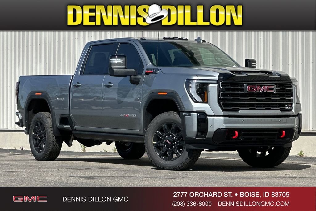 $9,240 off MSRP! 2026 GMC Sierra 2500HD Sterling Metallic AT4 4WD 10-Speed Automatic Duramax 6.6L V8 Turbodiesel 4D Crew Cab DENNIS DILLON DEAL, 10-Speed Automatic, 4WD, Jet Black With Kalahari Accents Leather, 10-Way Power Driver Seat Adjuster with Lumbar, 10-Way Power Passenger Seat Adjuster with Lumbar, 120-Volt Bed Mounted Power Outlet, 120-Volt Instrument Panel Power Outlet, 2 Charge-Only Rear USB Ports, 2 Charge/Data USB Ports Inside Center Console, 2 USB Ports, 2-Speed Active Transfer Case, 220-Amp Alternator, 4-Wheel Disc Brakes, 7 Speakers, ABS brakes, Air Conditioning, Alloy wheels, AM/FM radio: SiriusXM with 360L, Apple CarPlay/Android Auto, AT4 Preferred Package, AT4 Premium Plus Package, Auto High-beam Headlights, Auto-dimming door mirrors, Auto-dimming Rear-View mirror, Automatic Emergency Braking, Automatic temperature control, Bed View Camera with Two Trailer Camera Provisions, Bose Premium 7-Speaker Sound System, Brake assist, Buckle to Drive, Bumpers: body-color, Compass, Deep-Tinted Glass, Delay-off headlights, Driver door bin, Driver Memory, Driver vanity mirror, Dual front impact airbags, Dual front side impact airbags, Electric Rear-Window Defogger, Electronic Stability Control, Emergency communication system: OnStar, Engine Block Heater, Exhaust Brake, Floor-Mounted Center Console, Following Distance Indicator, Forward Collision Alert, Front anti-roll bar, Front Bucket Seats, Front Center Armrest, Front dual zone A/C, Front fog lights, Front License Plate Kit, Front Pedestrian Braking, Front Premium Floor Liners with Removable Carpet Insert, Front Rain-Sensing Wipers, Front reading lights, Front wheel independent suspension, Fully automatic headlights, Gloss Black Header Grille and Grille Insert Bars, Gooseneck/5th Wheel Prep Package, HD Surround Vision, Heated 2nd Row Outboard Seats, Heated door mirrors, Heated Driver and Front Outboard Passenger Seats, Heated front seats, Heated rear seats, Heated steering wheel, Heavy-Duty 80 Amp Battery, Hill Descent Control, Hitch Guidance with Hitch View, Illuminated entry, in-Vehicle Trailering System App, Inside Rearview Auo-Dimming Rear Camera Mirror, IntelliBeam Automatic High Beam on/Off, Keyless Open and Start, Lane Departure Warning System, LED Cargo Area Lighting, LED Smoked Amber Roof Marker Lamps, Low tire pressure warning, Manual Tilt-Wheel/Telescoping Steering Column, Max Trailering Package, Memory seat, Multicolor 15 Diagonal Head-Up Display, Occupant sensing airbag, Off-Road High Clearance Step, Off-Road Suspension, OnStar Services Capable, Outside temperature display, Overhead airbag, Overhead console, Panic alarm, Passenger door bin, Passenger vanity mirror, Perforated Leather-Appointed Front Seat Trim, Pickup Box, Power door mirrors, Power driver seat, Power Front Passenger Windows with Express Up/Down, Power passenger seat, Power Sliding Rear Window with Defogger, Power steering, Power Sunroof, Power windows, Power-Retractable Black Assist Steps, Preferred Equipment Group 4SB, Premium audio system: Premium GMC Infotainment System, Push Button Start, Radio: AM/FM Stereo with Premium GMC Infotainment System, Rain sensing wipers, Rear Cross Traffic Alert, Rear Premium Floor Liners with Removable Carpet Insert, Rear reading lights, Rear seat center armrest, Rear step bumper, Rear Wheelhouse Liners, Rear window defroster, Remote keyless entry, Remote Vehicle Starter System, Safety Alert Seat, Security system, SiriusXM with 360L Trial Subscription, Speed control, Speed-sensing steering, Split folding rear seat, Spray-on Pickup Bedliner with GMC Logo, Steering Wheel Audio Controls, Steering wheel mounted audio controls, Tachometer, Technology Package, Telescoping steering wheel, Tilt steering wheel, Traction control, Trailer Cam Provisions and Trailer Viewing Software, Trailer Side Blind Zone Alert, Trip computer, Turn signal indicator mirrors, Ultrasonic Front and Rear Park A Price includes: $1000 - Buic