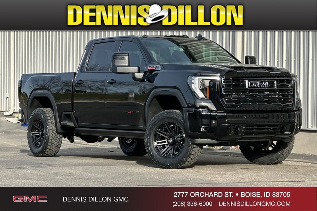 2026 GMC Sierra 3500HD Onyx Black AT4 4WD 10-Speed Automatic Duramax 6.6L V8 Turbodiesel 4D Crew Cab 10-Speed Automatic, 4WD, Jet Black With Kalahari Accents Leather, 10-Way Power Driver Seat Adjuster with Lumbar, 10-Way Power Passenger Seat Adjuster with Lumbar, 120-Volt Bed Mounted Power Outlet, 120-Volt Instrument Panel Power Outlet, 2 Charge-Only Rear USB Ports, 2 Charge/Data USB Ports Inside Center Console, 2 USB Ports, 2-Speed Active Transfer Case, 220 Amp Alternator, 4-Wheel Disc Brakes, 7 Speakers, ABS brakes, Air Conditioning, Alloy wheels, AM/FM radio: SiriusXM with 360L, AT4 Preferred Package, AT4 Premium Plus Package, Auto High-beam Headlights, Auto-dimming door mirrors, Auto-Dimming Inside Rearview Mirror with Camera, Auto-dimming Rear-View mirror, Automatic Emergency Braking, Automatic temperature control, Bed View Camera with Two Trailer Camera Provisions, Black Power-Retractable Assist Steps, Bose Premium 7-Speaker Sound System, Brake assist, Buckle to Drive, Bumpers: body-color, Compass, Deep-Tinted Glass, Delay-off headlights, Driver door bin, Driver Memory, Driver vanity mirror, Dual front impact airbags, Dual front side impact airbags, Electric Rear-Window Defogger, Electronic Stability Control, Emergency communication system: OnStar Services capable, Engine Block Heater, Exhaust Brake, Exterior Parking Camera Rear, Floor-Mounted Center Console, Following Distance Indicator, Forward Collision Alert, Front anti-roll bar, Front Bucket Seats, Front Center Armrest, Front dual zone A/C, Front fog lights, Front License Plate Kit, Front Pedestrian Braking, Front Rain-Sensing Wipers, Front reading lights, Front wheel independent suspension, Fully automatic headlights, Gloss Black Header and Grille Insert Bars, GMC Premium 13.4 Diagonal Information Display, Gooseneck/5th Wheel Prep Package, HD Surround Vision, Heated 2nd Row Outboard Seats, Heated door mirrors, Heated Driver and Front Outboard Passenger Seats, Heated front seats, Heated rear seats, Heated steering wheel, Heavy-Duty 80 Amp-Hour Battery, Hill Descent Control, Hitch Guidance with Hitch View, Illuminated entry, IntelliBeam Automatic High Beam on/Off, Keyless Open and Start, Lane Departure Warning System, LED Cargo Area Lighting, LED Smoked Amber Roof Marker Lamps, Low tire pressure warning, Manual Tilt-Wheel/Telescoping Steering Column, Memory seat, Multicolor 15 Diagonal Head-Up Display, Occupant sensing airbag, Off-Road High Clearance Step, Off-Road Suspension, Outside temperature display, Overhead airbag, Overhead console, Panic alarm, Passenger door bin, Passenger vanity mirror, Perforated Front Leather Seat Trim, Pickup Bed, Power door mirrors, Power driver seat, Power Front Windows with Passenger Express Up/Down, Power passenger seat, Power Sliding Rear Window with Defogger, Power steering, Power Sunroof, Power windows, Preferred Equipment Group 4SB, Premium audio system: Premium GMC Infotainment System, Premium Front Floor Liners with Removable Carpet Insert, Premium Rear Floor Liners with Removable Carpet Insert, Push Button Start, Radio: AM/FM Stereo with Premium GMC Infotainment System, Rain sensing wipers, Rear Cross Traffic Alert, Rear reading lights, Rear seat center armrest, Rear step bumper, Rear Wheelhouse Liners, Rear window defroster, Remote keyless entry, Remote Vehicle Starter System, Safety Alert Seat, Security system, SiriusXM with 360L Trial Subscription, Speed control, Speed-sensing steering, Split folding rear seat, Spray-on Pickup Bedliner with GMC Logo, Steering Wheel Audio Controls, Steering wheel mounted audio controls, Tachometer, Technology Package, Telescoping steering wheel, Tilt steering wheel, Traction control, Trailer Camera Provisions, Trailer Side Blind Zone Alert, Trailer Tire Pressure Monitor Sensors, Trip computer, Turn signal Price includes: $1000 - Buick & GMC Consumer Cash Program. Exp. 04/30/2026 $500 - GM Military Cash Allowance Program. Exp. 01/04/2027 Pric