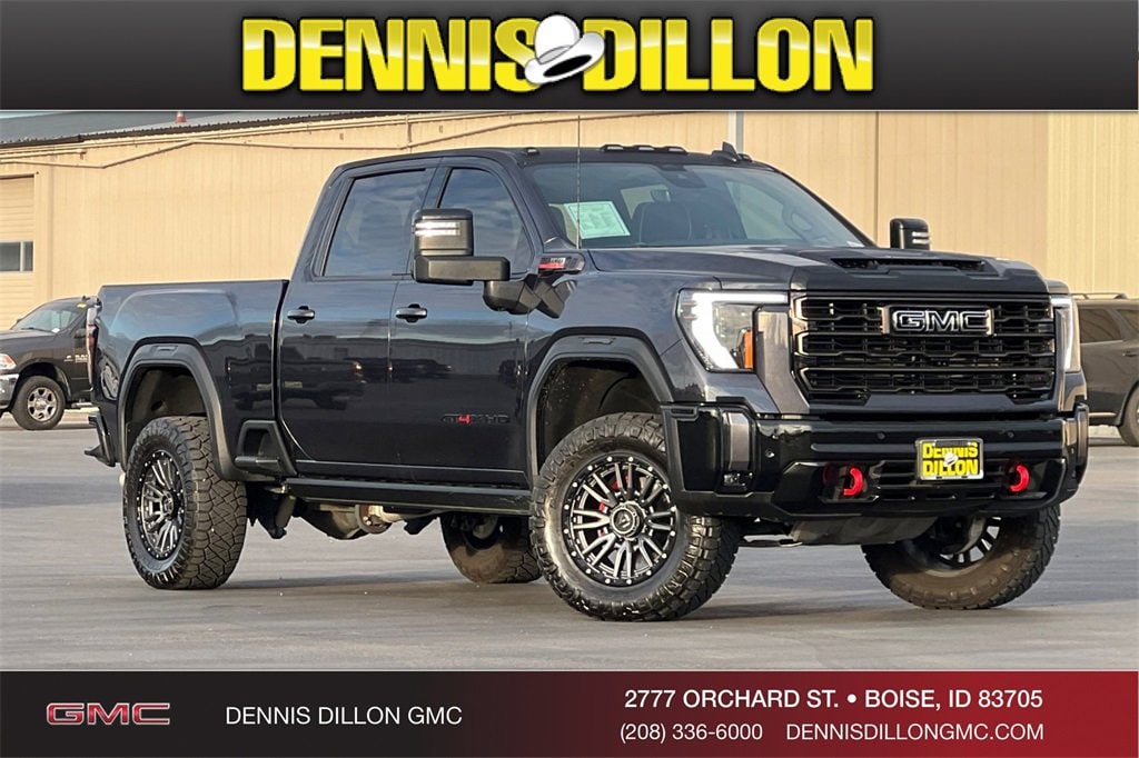 2024 GMC Sierra 2500HD AT4X Titanium Rush Metallic Clean CARFAX.Welcome to Dennis Dillon GMC, your trusted destination for a no-hassle, no-haggle car buying experience. At our dealership, we pride ourselves on offering the best upfront prices no surprises, just exceptional value. From the moment you walk through our doors, youâll receive our lowest, most competitive price without the need for negotiation. Weâre committed to providing a straightforward, stress-free experience, so you can drive away feeling confident and satisfied with your purchase!10-Speed Automatic, 4WD, Obsidian Rush Leather, 12 Speakers, 120-Volt Bed Mounted Power Outlet, 120-Volt Instrument Panel Power Outlet, 16-Way Power Driver Seat Adjuster w/Lumbar, 16-Way Power Passenger Seat Adjuster w/Lumbar, 2 Charge-Only Rear USB Ports, 2 Charge/Data USB Ports Inside Center Console, 2 USB Ports, 2-Speed Active Transfer Case, 220-Amp Alternator, 4-Wheel Disc Brakes, ABS brakes, Air Conditioning, Alloy wheels, AM/FM radio: SiriusXM with 360L, Apple CarPlay/Android Auto, Auto High-beam Headlights, Auto-dimming door mirrors, Auto-dimming Rear-View mirror, Automatic Emergency Braking, Automatic temperature control, Bed View Camera w/2 Trailer Camera Provisions, Bose Premium Series 12-Speaker System, Brake assist, Buckle to Drive, Compass, Deep-Tinted Glass, Delay-off headlights, Driver door bin, Driver Memory, Driver vanity mirror, Dual front impact airbags, Dual front side impact airbags, Electric Rear-Window Defogger, Electronic Stability Control, Emergency communication system: OnStar and GMC connected services capable, Engine Block Heater, Exhaust Brake, Floor-Mounted Center Console, Following Distance Indicator, Forward Collision Alert, Front anti-roll bar, Front Bucket Seats, Front Center Armrest, Front dual zone A/C, Front fog lights, Front License Plate Kit, Front Pedestrian Braking, Front Prem Floor Liners w/Removable Carpet Insert, Front Rain-Sensing Wipers, Front reading lights, Front wheel independent suspension, Full Grain Leather Seat Trim, Fully automatic headlights, Garage door transmitter, Gloss Black Door Handles, Gloss Black Header Grille & Grille Insert Bars, GMC Connected Access Capable, Gooseneck/5th Wheel Prep Package, HD Surround Vision, Heads-Up Display, Heated 2nd Row Outboard Seats, Heated door mirrors, Heated Driver & Front Outboard Passenger Seats, Heated front seats, Heated rear seats, Heated steering wheel, Heavy-Duty 80 Amp Battery, Hill Descent Control, Hitch Guidance w/Hitch View, Hitch Package (LPO), Illuminated entry, In-Vehicle Trailering System App, Inside Rearview Auto-Dimming Rear Camera Mirror, Integrated Trailer Brake Controller, IntelliBeam Automatic High Beam On/Off, Keyless Open & Start, Lane Departure Warning System, Leather steering wheel, LED Cargo Area Lighting, LED Smoked Amber Roof Marker Lamps, Low tire pressure warning, Manual Tilt-Wheel/Telescoping Steering Column, Memory seat, Multicolor 15 Diagonal Head-Up Display, Occupant sensing airbag, Off-Road Suspension, OnStar & GMC Connected Services Capable, Outside temperature display, Overhead airbag, Overhead console, Panic alarm, Passenger door bin, Passenger vanity mirror, Pickup Box, Power door mirrors, Power driver seat, Power Front Passenger Windows w/Express Up/Down, Power moonroof, Power passenger seat, Power Sliding Rear Window w/Defogger, Power steering, Power Sunroof, Power windows, Preferred Equipment Group 4SG, Premium audio system: Premium GMC Infotainment System, Push Button Start, Radio: AM/FM w/Premium GMC Infotainment System, Rain sensing wipers, Rear Cross Traffic Alert, Rear Prem Floor Liners w/Removable Carpet Insert, Rear reading lights, Rear seat center armrest, Rear step bumper, Rear Wheelhouse Liners, Rear window defroster, Remote keyless entry, Remote Vehicle Starter System, Safety Alert Seat, Security system, SiriusXM w/360L, Speed control, Speed-sensing steering, Split folding rear seat, Spray-On Bedliner w/AT4 Logo