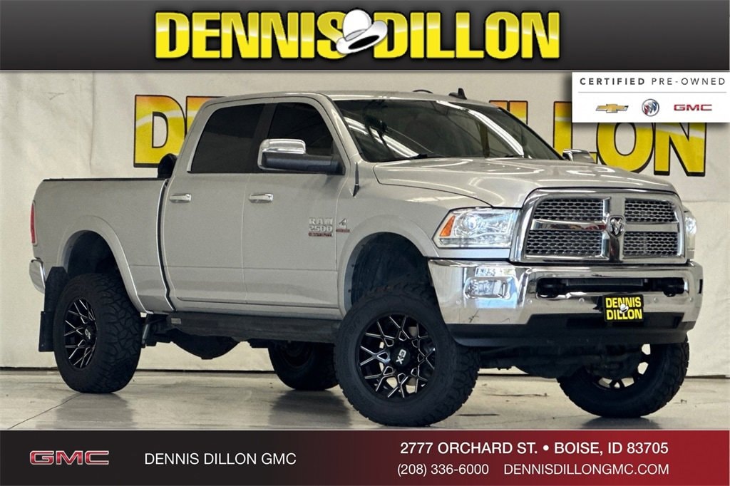 2017 Ram 2500 Laramie Bright Silver Metallic ClearcoatCertified. Ram Details:* Warranty Deductible: $100* Vehicle History* 125 Point Inspection* Roadside Assistance* Powertrain Limited Warranty: 84 Month/100,000 Mile (whichever comes first) from original in-service date (for FCA US LLC Certified Pre-Owned program)* Vehicles Up to 75,000 Miles and/or 5 Model Years. 24-Hour Towing & Roadside Assistance, Car Rental Allowance, CARFAX® Vehicle History ReportTM and an Introductory 3-month Subscription to SiriusXM® Satellite Radio & Certified Warranty Upgrades (for FCA US LLC Certified Pre-Owned program), Vehicles Between 6-10 Model Years and/or 75,001-120,000 Miles. Thorough Reconditioning Process Using Authentic Mopar Parts. 3-Month Trial Subscription for SiriusXM GuardianTM and Satellite Radio (for Certified Pre-Owned Go program), Vehicles Between 0-5 Model Years and/or 75,000 Miles. Thorough Reconditioning Process Using Authentic Mopar Parts. 12 Month/12,000 Mile Extended Care Premium Warranty, Car Rental Allowance, 3-Month Trial Subscription for SiriusXM GuardianTM and Satellite Radio (for Certified Pre-Owned Gold program)* Transferable Warranty (for FCA US LLC Certified Pre-Owned program)* Limited Warranty: 3 Month/3,000 Mile Runs From the Date of the CPOV Sale, or at the expiration of the remaining 3/36 Basic New Vehicle Warranty (whichever is more beneficial to the customer) (for Certified Pre-Owned Go program), 3 Month/3,000 Mile (whichever comes first) after new car warranty expires or from certified purchase date (for Certified Pre-Owned Gold program), 3 Month/3,000 Mile (whichever comes first) after new car warranty expires or from certified purchase date (for FCA US LLC Certified Pre-Owned program)Welcome to Dennis Dillon GMC, your trusted destination for a no-hassle, no-haggle car buying experience. At our dealership, we pride ourselves on offering the best upfront prices no surprises, just exceptional value. From the moment you walk through our doors, youâll receive our lowest, most competitive price without the need for negotiation. Weâre committed to providing a straightforward, stress-free experience, so you can drive away feeling confident and satisfied with your purchase!Ram Certified, 10 Speakers, 115V Auxiliary Power Outlet, 180 Amp Alternator, 3.42 Axle Ratio, 3.73 Axle Ratio, 4-Wheel Disc Brakes, ABS brakes, Air Conditioning, Alloy wheels, AM/FM radio: SiriusXM, Anti-Spin Differential Rear Axle, Audio memory, Auto-dimming door mirrors, Auto-dimming Rear-View mirror, Automatic temperature control, Brake assist, Bumpers: chrome, Chrome Exterior Mirrors, Compass, Delay-off headlights, Driver door bin, Driver vanity mirror, Dual front impact airbags, Dual front side impact airbags, Electronic Stability Control, Emergency communication system: Uconnect Access, Exterior Mirrors Courtesy Lamps, Exterior Mirrors w/Heating Element, Exterior Mirrors w/Memory, Exterior Mirrors w/Supplemental Signals, Front anti-roll bar, Front Armrest w/Cupholders, Front Center Armrest w/Storage, Front dual zone A/C, Front fog lights, Front reading lights, Fully automatic headlights, Garage door transmitter, Heated door mirrors, Heated Front Seats, Heated front seats, Heated steering wheel, Illuminated entry, Leather steering wheel, Leather Trim 40/20/40 Bench Seat, Low tire pressure warning, Manufacturer's Statement of Origin, Media Hub (USB, AUX), Memory seat, Occupant sensing airbag, Outside temperature display, Overhead airbag, Overhead console, Panic alarm, ParkView Rear Back-Up Camera, Passenger door bin, Passenger vanity mirror, Power door mirrors, Power driver seat, Power Folding Chrome Trailer Tow Mirrors, Power Folding Mirrors, Power passenger seat, Power steering, Power windows, Quick Order Package 2FH Laramie, Radio data system, Radio: Uconnect 3C w/8.4 Display, Rear seat center armrest, Rear step bumper, Remote keyless entry, Security system