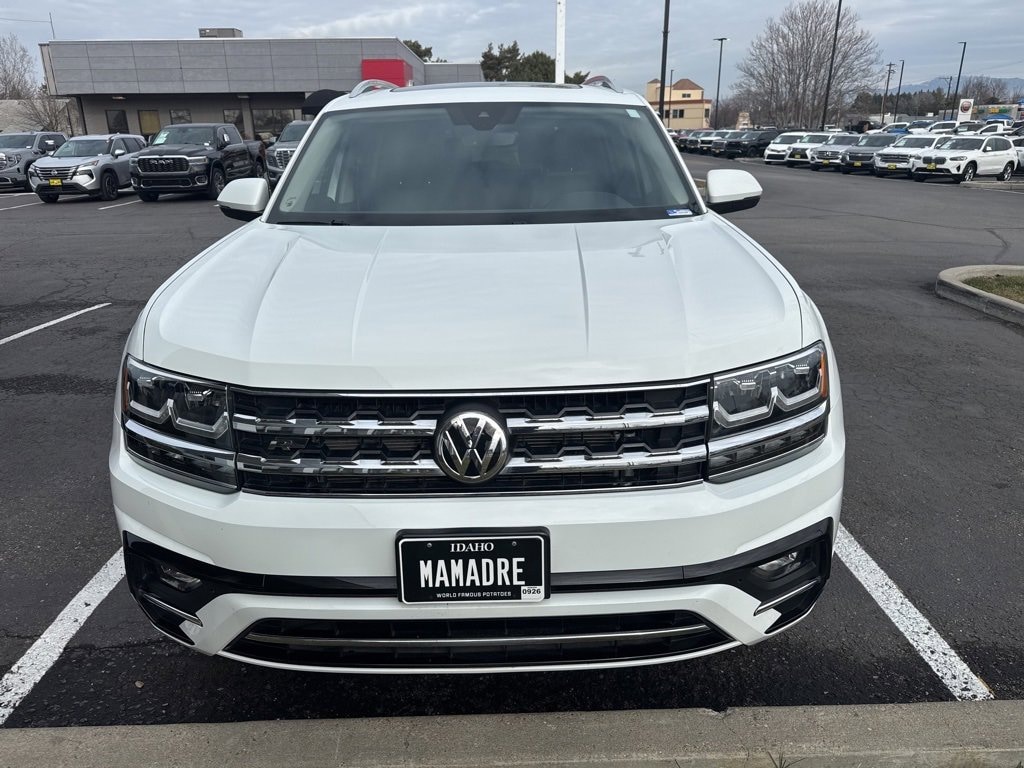2019 Volkswagen Atlas 3.6L V6 SE R-Line White Clean CARFAX. CARFAX One-Owner.Welcome to Dennis Dillon GMC, your trusted destination for a no-hassle, no-haggle car buying experience. At our dealership, we pride ourselves on offering the best upfront prices no surprises, just exceptional value. From the moment you walk through our doors, youâll receive our lowest, most competitive price without the need for negotiation. Weâre committed to providing a straightforward, stress-free experience, so you can drive away feeling confident and satisfied with your purchase!20 Twin 5-Spoke Alloy Wheels, 3.60 Axle Ratio, 3rd row seats: split-bench, 4-Wheel Disc Brakes, 8 Speakers, ABS brakes, Active Blind Spot Monitor, Air Conditioning, Alloy wheels, AM/FM radio: SiriusXM, Auto-dimming Rear-View mirror, Automatic temperature control, Brake assist, Bumpers: body-color, Compass, Delay-off headlights, Driver door bin, Driver vanity mirror, Dual front impact airbags, Dual front side impact airbags, Electronic Stability Control, Emergency communication system: VW Car-Net services (capabilities require enrollment or subscription), Exterior Parking Camera Rear, Forward collision: FCW w/Autonomous Emergency Braking mitigation, Four wheel independent suspension, Front anti-roll bar, Front Bucket Seats, Front Center Armrest, Front dual zone A/C, Front fog lights, Front reading lights, Heated Comfort Front Bucket Seats, Heated door mirrors, Heated front seats, Illuminated entry, Low tire pressure warning, Occupant sensing airbag, Outside temperature display, Overhead airbag, Overhead console, Panic alarm, Passenger door bin, Passenger vanity mirror, Power door mirrors, Power driver seat, Power Liftgate, Power steering, Power windows, Radio data system, Radio: Composition Media 8.0 Touchscreen, Rain sensing wipers, Rear air conditioning, Rear anti-roll bar, Rear reading lights, Rear seat center armrest, Rear window defroster, Rear window wiper, Remote CD player, Remote keyless entry, Roof rack: rails only, Security system, Speed control, Speed-sensing steering, Split folding rear seat, Spoiler, Standard Suspension, Steering wheel mounted audio controls, Tachometer, Telescoping steering wheel, Tilt steering wheel, Traction control, Trip computer, Turn signal indicator mirrors, V-Tex Leatherette Seating Surfaces, Variably intermittent wipers.AWD 8-Speed Automatic with Tiptronic 3.6L VR6 Recent Arrival! Odometer is 20859 miles below market average!Awards:* 2019 KBB.com 10 Best Road Trip Cars * 2019 KBB.com 12 Best Family Cars